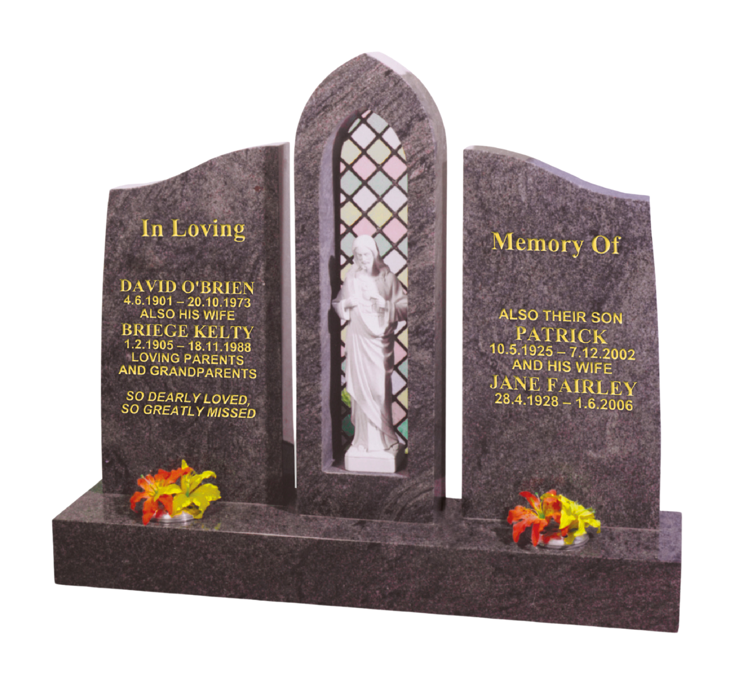 Here you can view a variety of upright headstones and monoliths. If you prefer, we can design and manufacture a bespoke memorial for you.