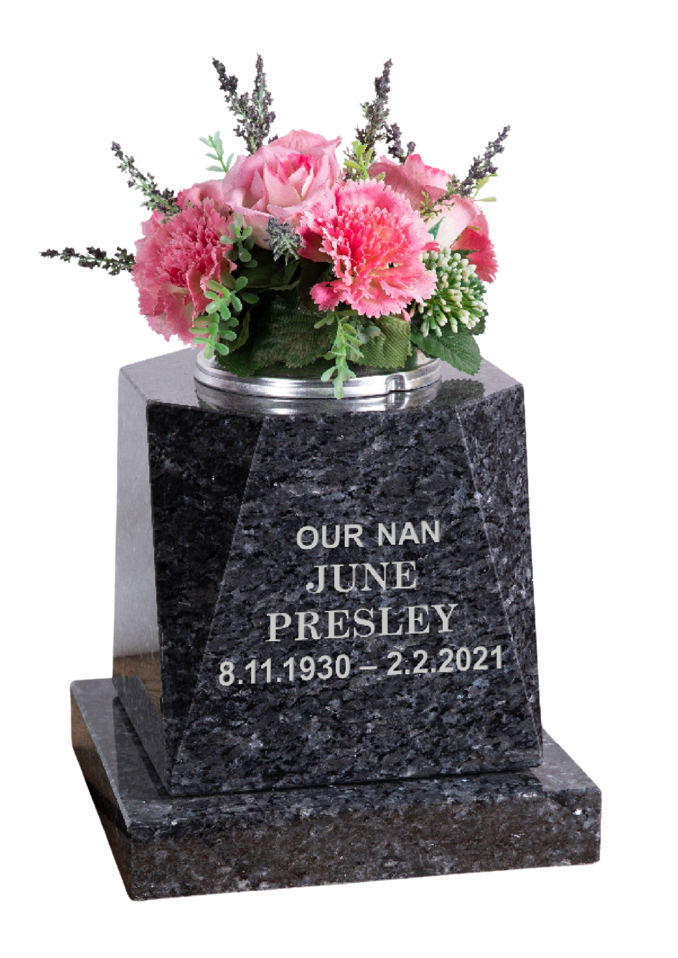 A plaque or vase provides flexibility when marking a grave. They can be purchased as a lower cost alternative to a full memorial, a temporary measure, or as an addition to an existing memorial to accommodate an inscription because space is restricted on the main memorial. They are also often chosen as an addition to provide a facility for flowers or as a commemorative gift from another family member or friend.